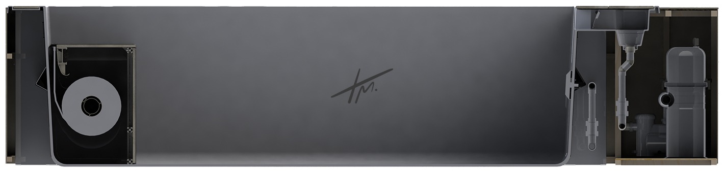 The flat-bottom configuration offers a clean, contemporary aesthetic, while the invisible underwater shutter box preserves uninterrupted lines beneath the surface. The result is a perfectly balanced space—where innovation, pleasure, and harmony come together naturally.